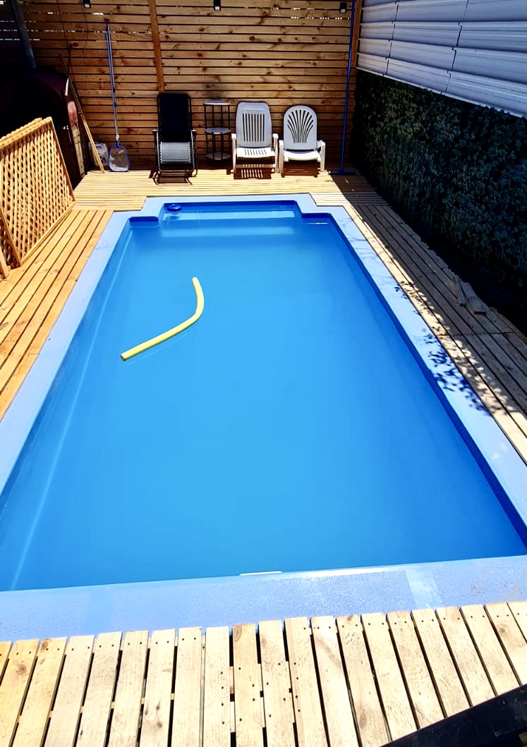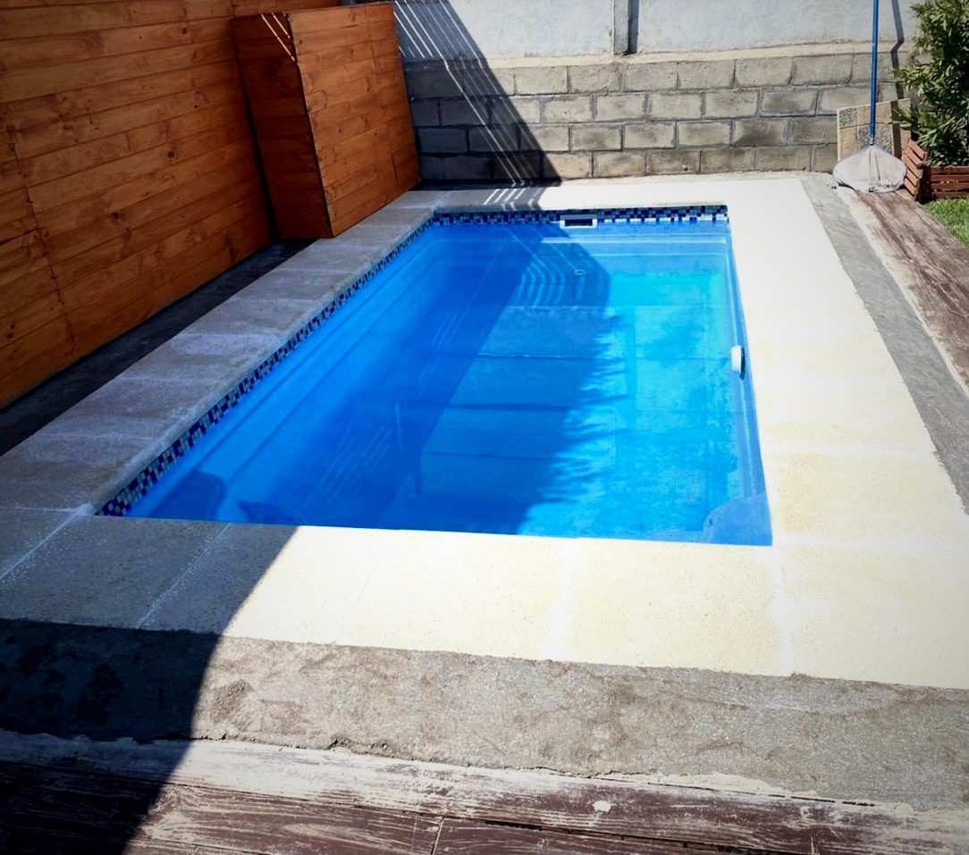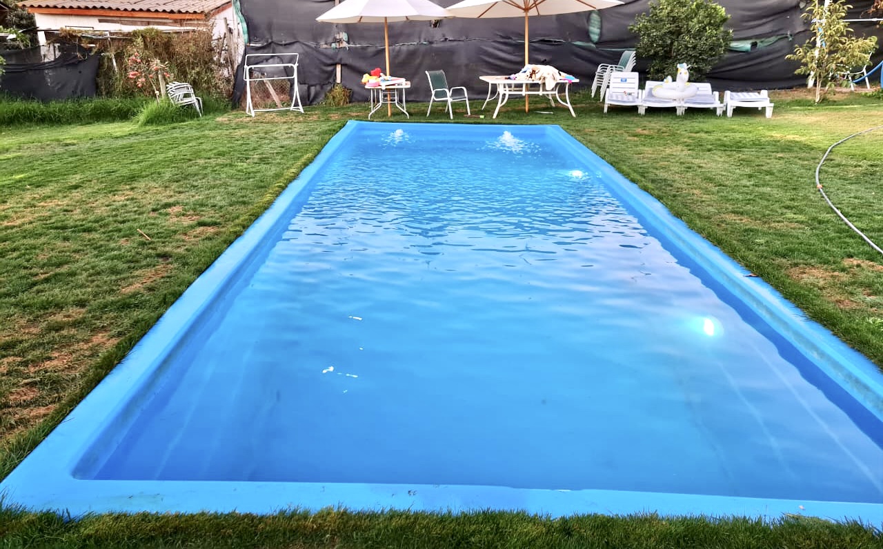 Casco monoblock, sin pèrdidas, antisìsmica y trasportable. Trae el color incluido y su pintura se renueva cada 3 años.Es de fàcil mantenciòn, superficie no porosa, evita adherencia de suciedad y algas. Caracterìsticas: Largo: 9,40 mts Ancho: 3,40 mts Profundidad: 1,0 a 1,80 mts Equipo y accesorios incluidos: 2 retornos 1dreno 1 skimmer filtro, bomba, tablero electrico foco led blanco o multicolor.
